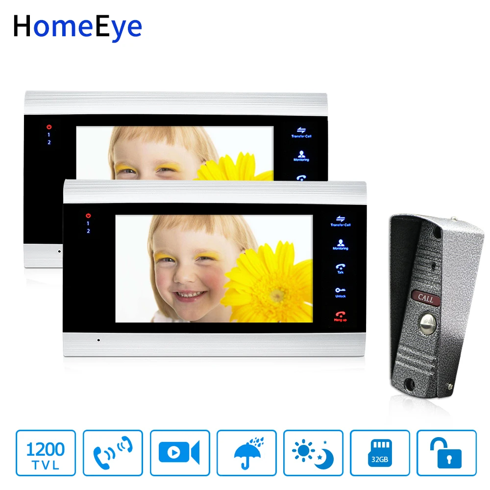 Deals For HomeEye 7'' Video Door Phone Intercom 1 to 2 1200TVL Waterproof Motion Detection Multi-languages OSD Menu Touch Button Screen Wonderfull